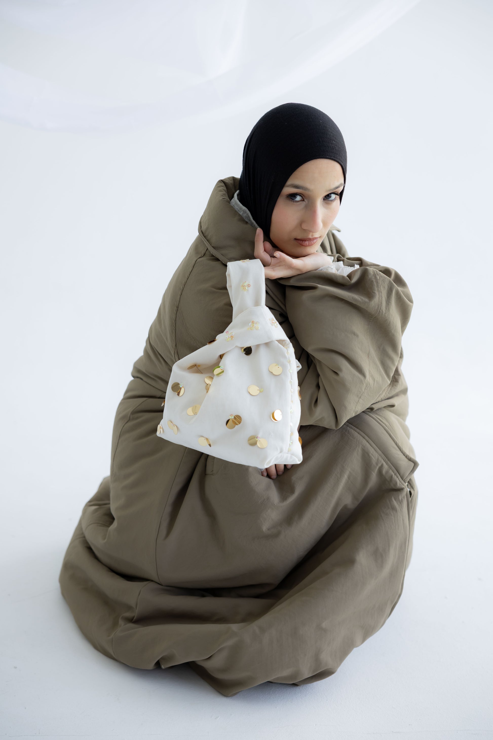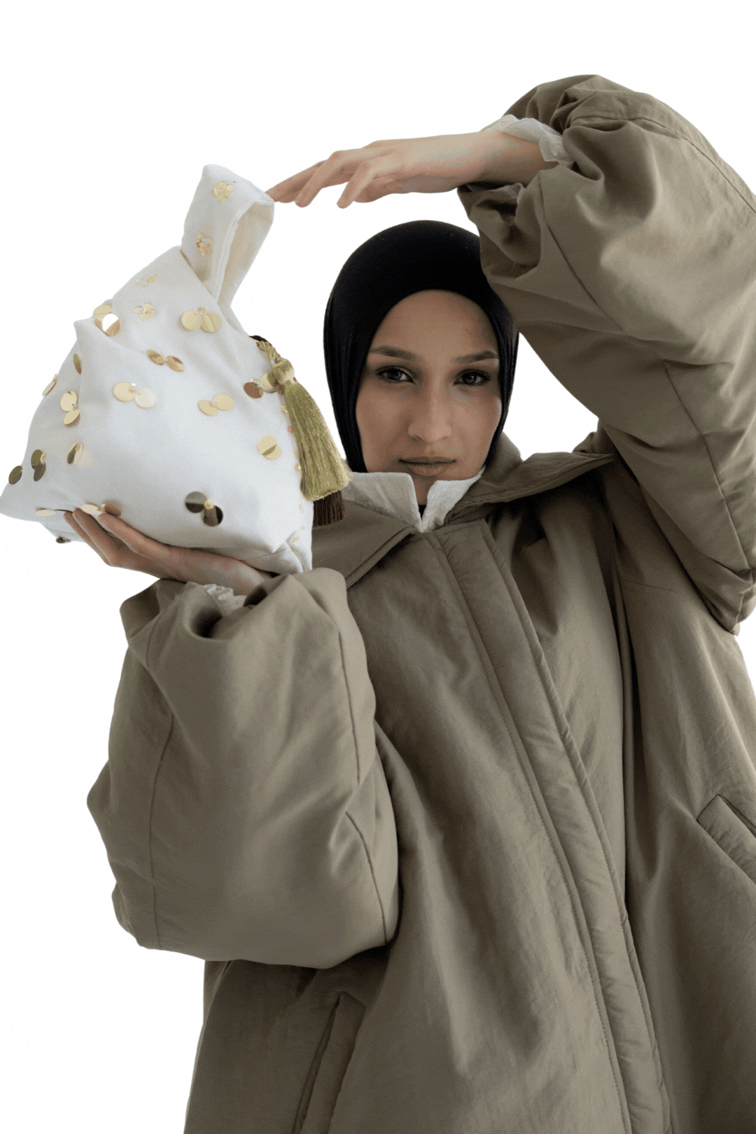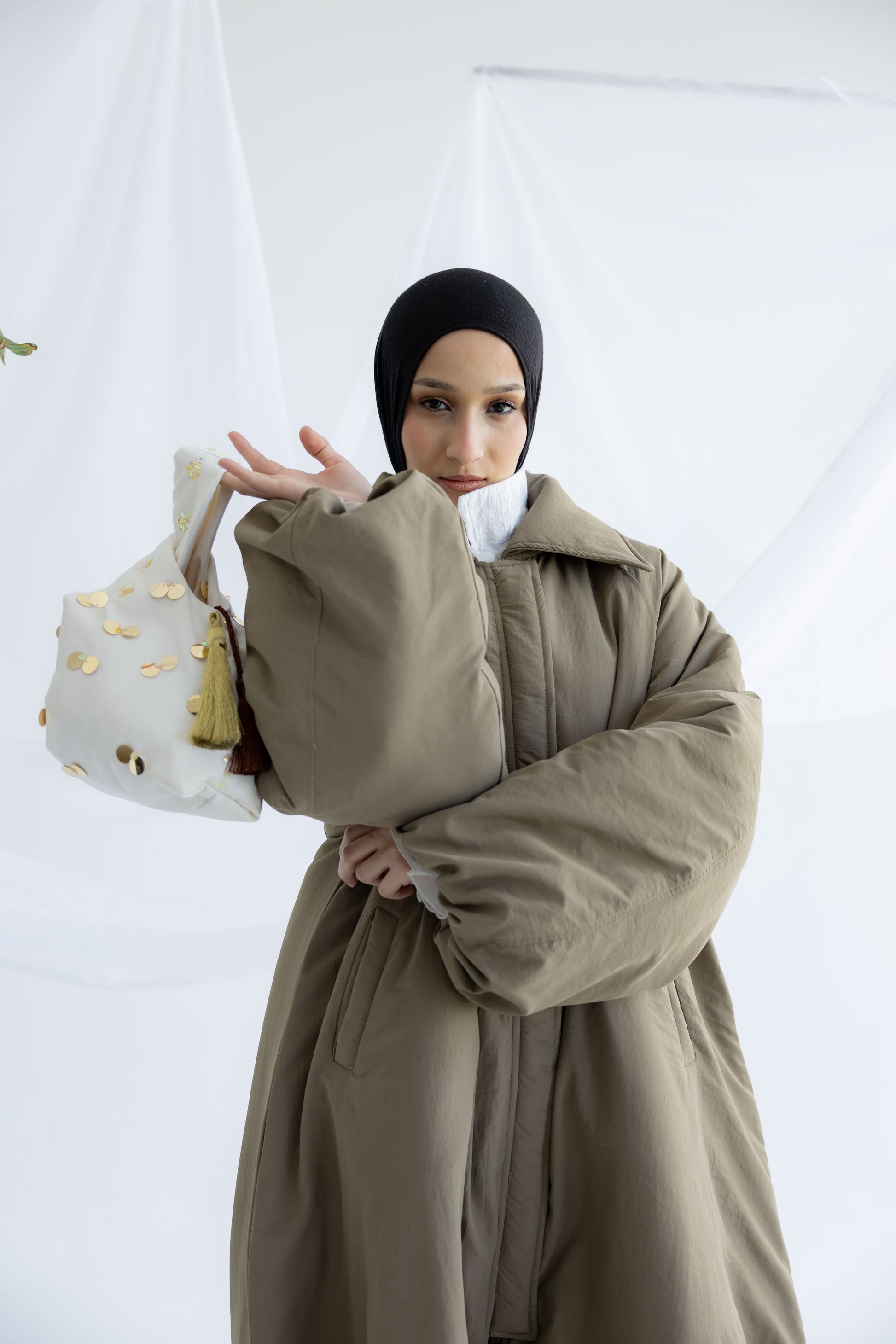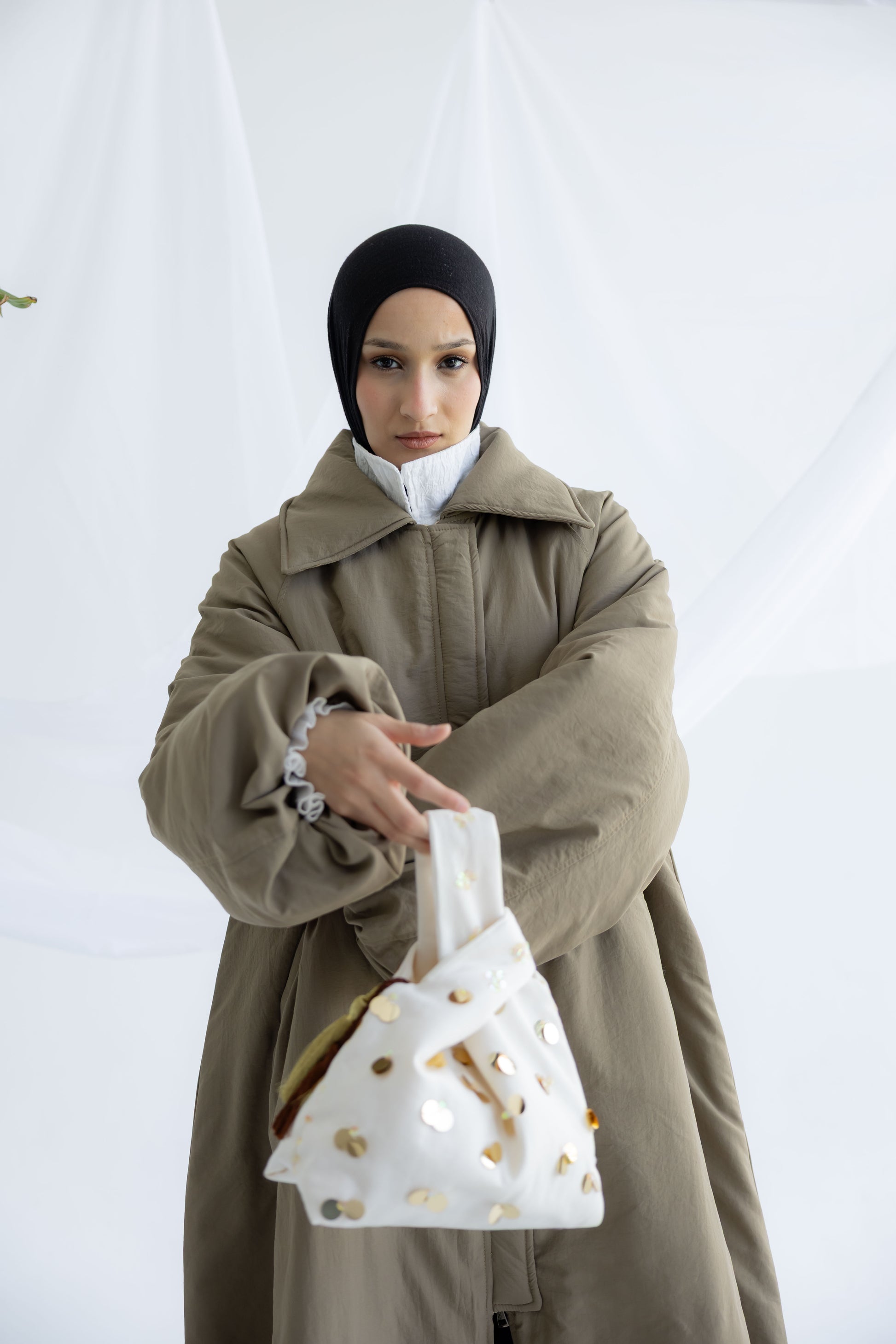 With its sculptural shape and statement finish, it’s perfect for Ramadan gatherings, evenings out, or adding a distinctive touch to simple looks.